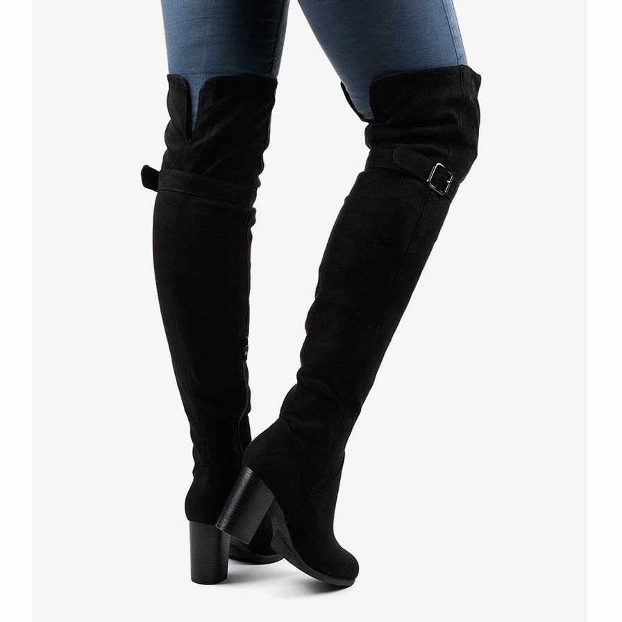 Inna marka Schwarze Wildlederstiefel am isolierten R18-17-Pfosten