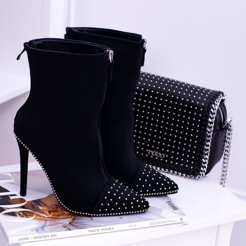 Wir präsentieren modische schwarze BUGO-Stiefeletten, die mit Sicherheit zu einem Schlüsselelement jedes Stylings werden. Aus hochwertigem, weichem Wildleder gefertigt, sorgen sie nicht nur für eine elegante Optik, sondern auch für hohen Tragekomfort. Das zarte Futter und der stabile 11 cm hohe Absatz machen jeden Schritt bequem und Sie werden sich sicher und stilvoll fühlen.