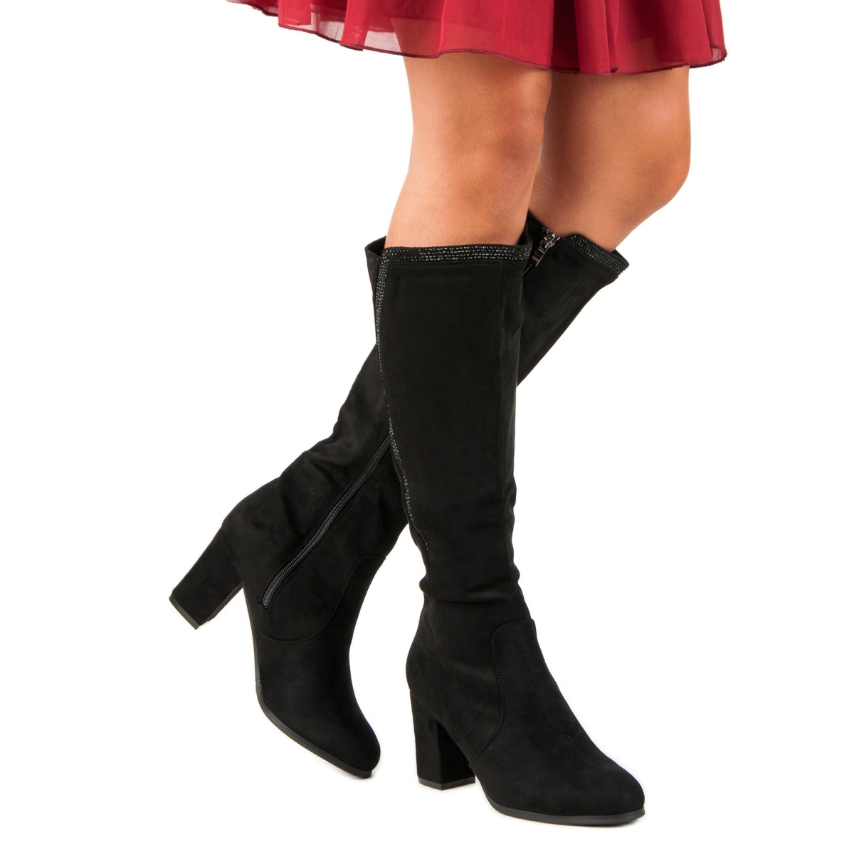 Die Stiefel zeichnen sich durch eine dezente Verzierung in Form von winzigen Kristallen aus, die ihnen einen einzigartigen Charakter verleihen und perfekt zu den Trends der Saison passen. Ihre universelle schwarze Farbe macht sie zu einer tollen Ergänzung sowohl für abendliche Ausflüge ins Restaurant als auch für zwanglose Treffen beim Kaffee mit Freunden.