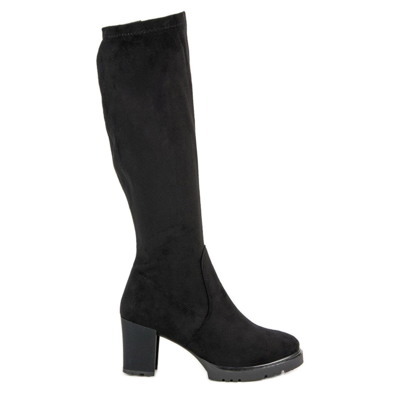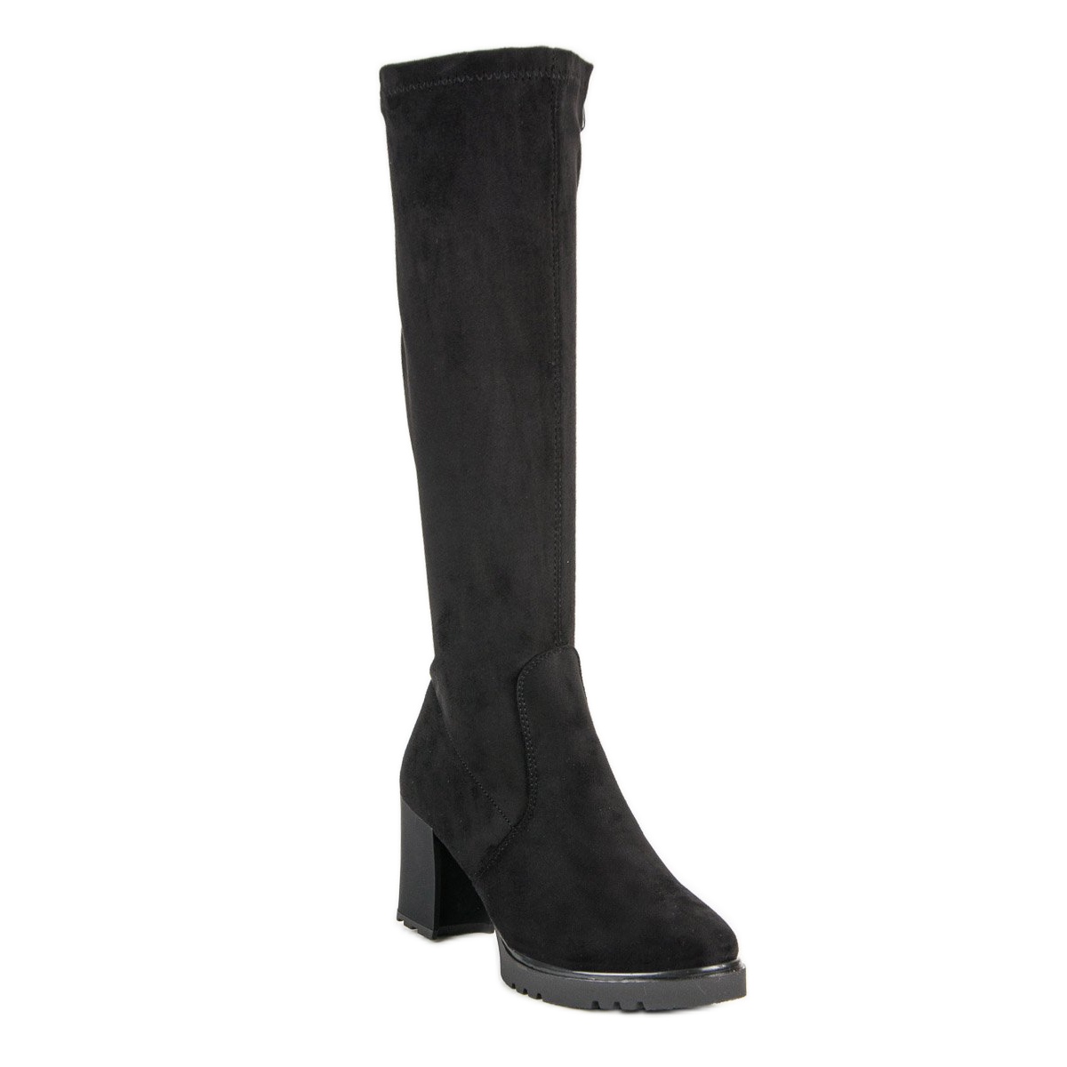 Schwarze Wildlederstiefel sind die perfekte Wahl für Frauen, die Eleganz mit Komfort verbinden möchten. Aus ökologischem Wildleder gefertigt, sehen sie äußerst stylisch aus und passen zu den neuesten Modetrends. Diese klassischen kniehohen Stiefel betonen perfekt die weibliche Figur und der hohe 8,5 cm hohe Absatz lässt die Beine schlanker und anmutiger wirken.