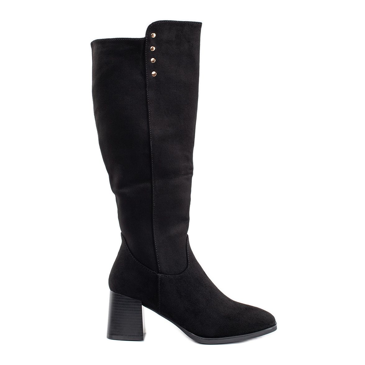 Inna marka Schwarze Wildlederstiefel mit hohen Absätzen