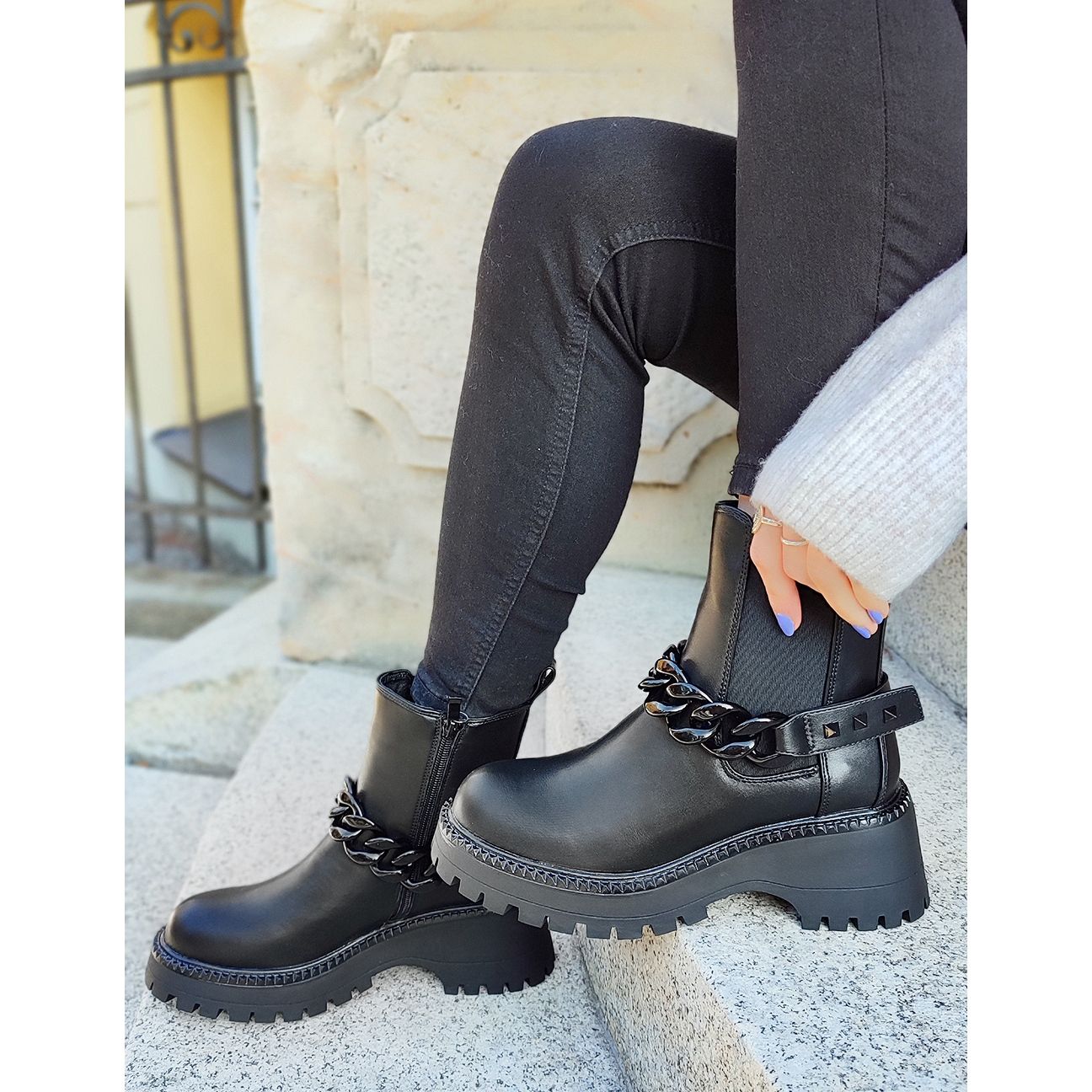 Klassische und gleichzeitig modische Arbeiter von Jodhpur -Stiefeln in universeller Schwarz. Hergestellt aus ökologischem Leder, mit einer praktischen Burg und einer dekorativen, abnehmbaren Kette - kombinieren Sie den Komfort mit einem Felcharakter. Die Erwärmung und eine höhere Plattformsohle (6,5 cm) machen das Modell an kühleren Tagen hervorragend.