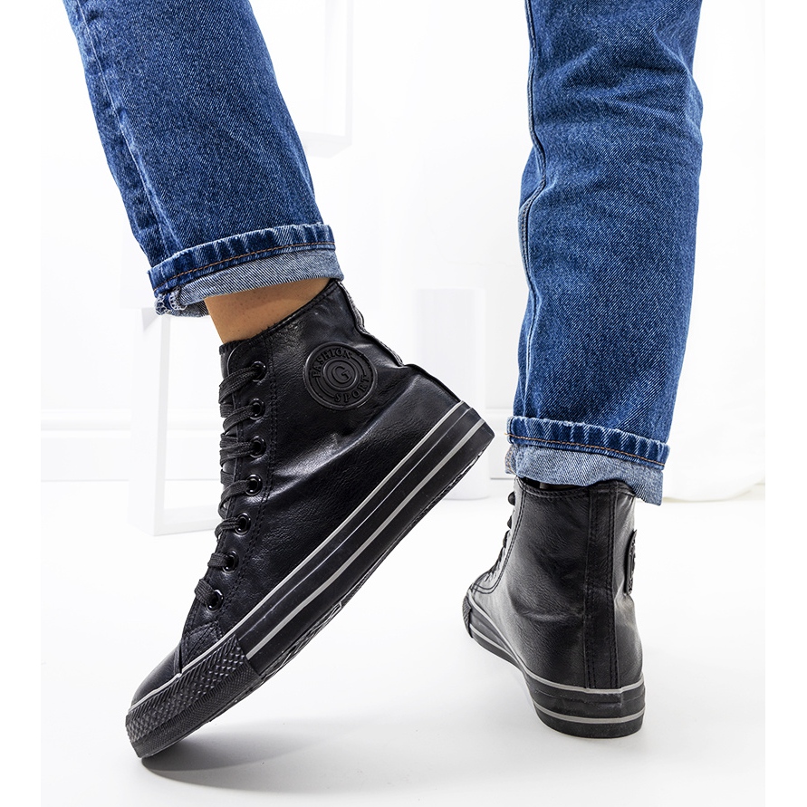 Entdecken Sie den Komfort und Stil der schwarzen, isolierten High-Top-Sneaker von Lade. Diese eleganten Schuhe sind aus hochwertigem ökologischem Leder gefertigt, was sie nicht nur modisch, sondern auch umweltfreundlich macht. Dank ihres zarten Schnitts passen sie sich perfekt dem Fuß an und sorgen so für ein angenehmes Tragegefühl den ganzen Tag.
