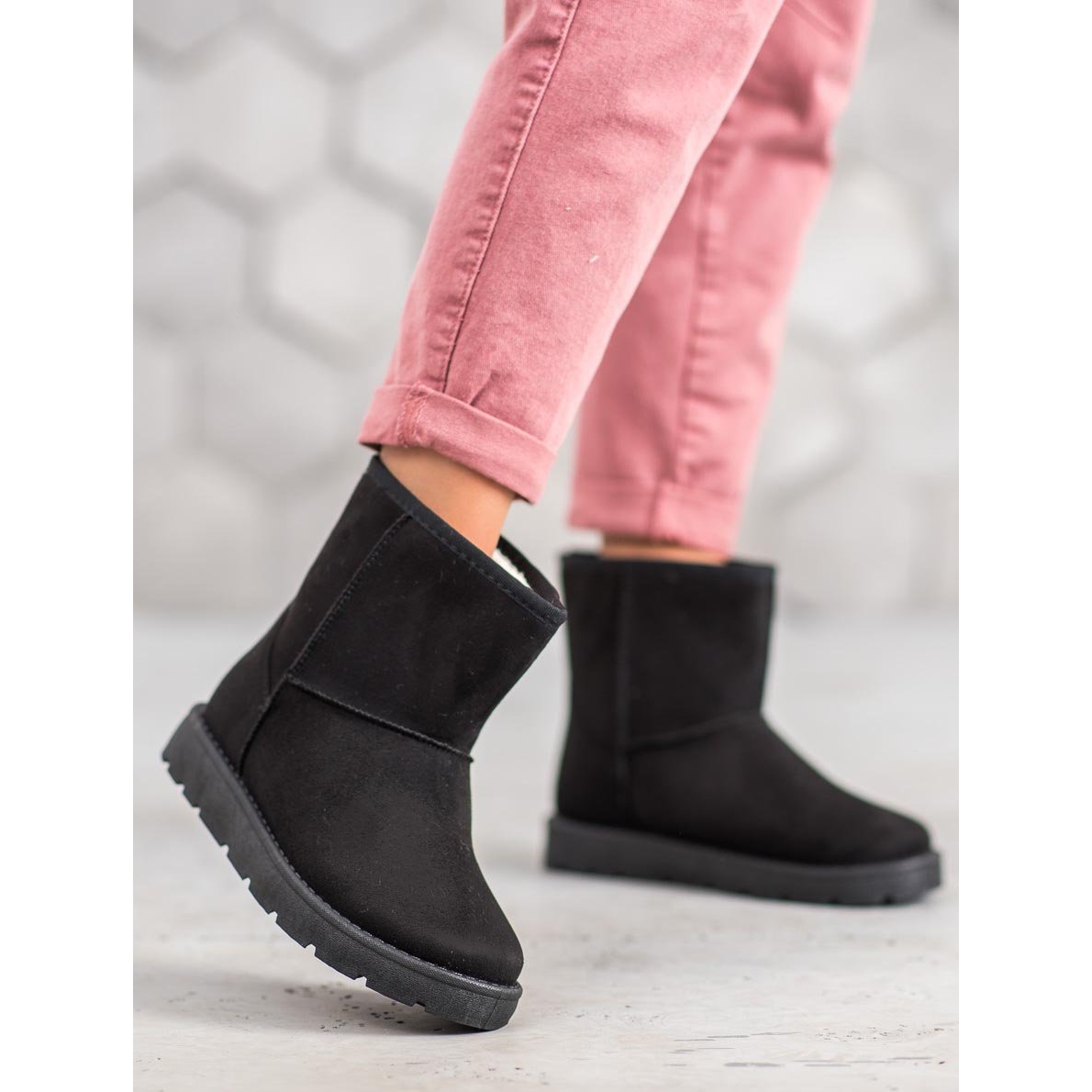 Dieses Schuhwerk ist nicht nur modisch, sondern auch funktional. Dank des Slip-on-Designs können Sie sie schnell und einfach anziehen, was sie perfekt für den täglichen Gebrauch macht. Feste Sohlen isolieren effektiv vom kalten Boden und sorgen so für Komfort auch an den kältesten Tagen. Darüber hinaus sorgen die Schafthöhe von 15–16 cm und die Breite von 28–32 cm dafür, dass sich diese Schuhe perfekt an den Fuß anpassen.
