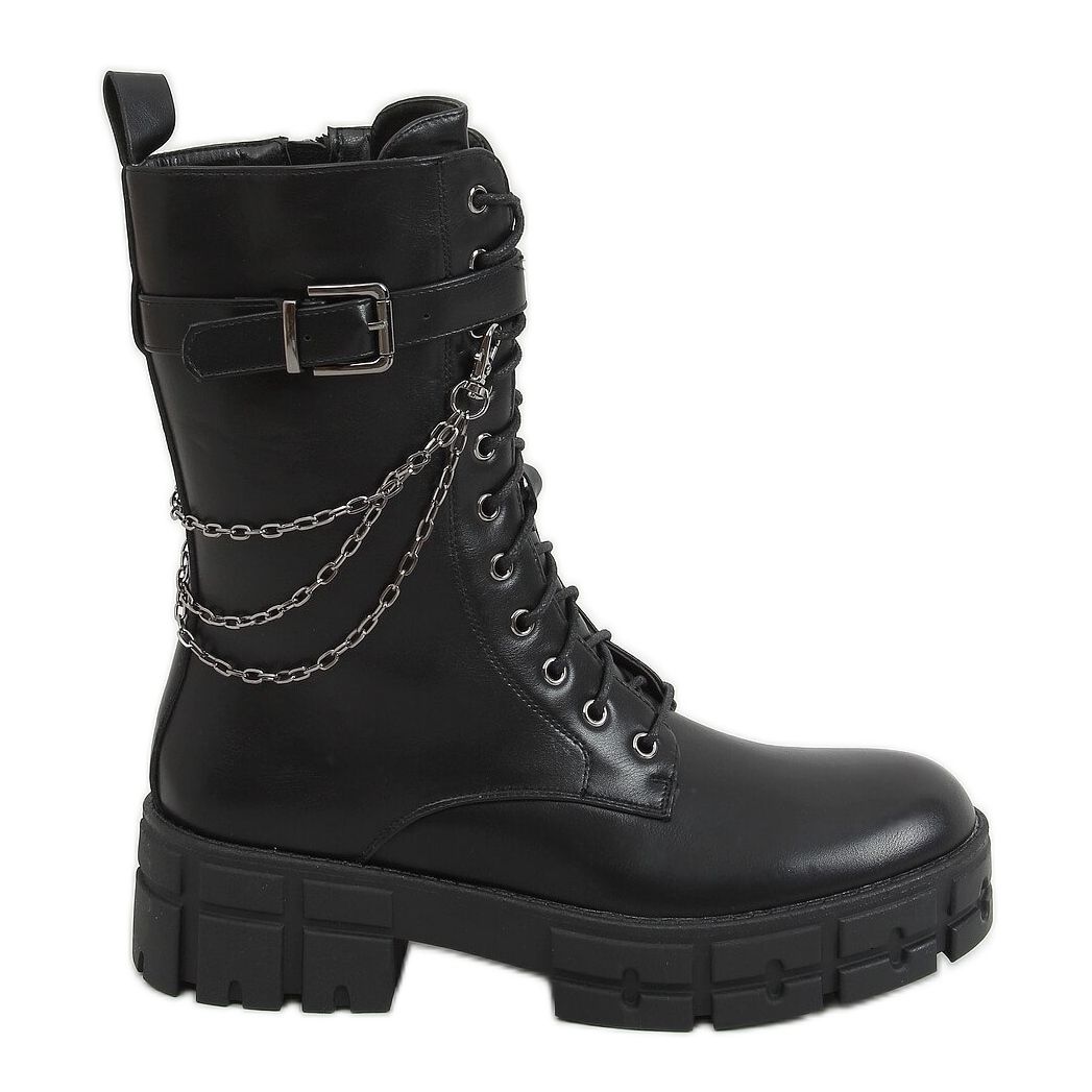 Die eleganten und stilvollen schwarzen Schnürschuhe DA77P Black sind die perfekte Wahl für moderne Frauen, die Wert auf Komfort und einen modischen Look legen. Diese vollnarbigen Stiefeletten aus hochwertigem Faux-Wildleder vereinen Rock-Style mit Alltagsfunktionalität. Dank eines breiten 5 cm hohen Absatzes und einer hohen Sohle (3 cm) sorgen sie für Stabilität und Komfort, unabhängig vom Anlass.