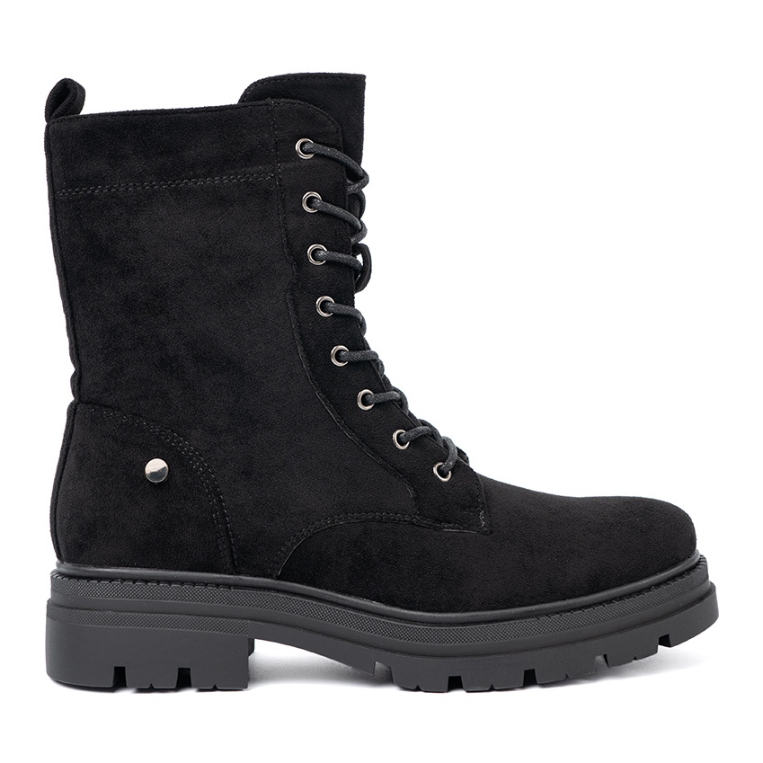 Die massive Sohle mit dem Profil fügt nicht nur Charakter hinzu, sondern sorgt auch für Stabilität und Haftung, was diese Stiefel zu einer idealen Wahl für verschiedene Wetterbedingungen macht. Dank der Flat Heel 4 cm High sind Shelvt -Arbeiter perfekt für Stadtwanderungen oder Treffen mit Freunden.