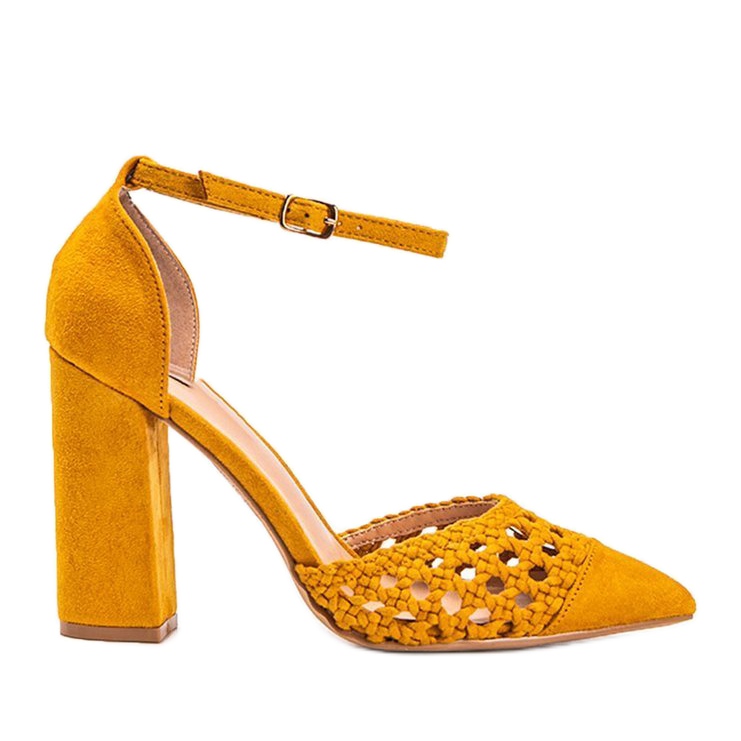 Inna marka Senffarbene durchbrochene Pumpen an der Hana-Säule gelb