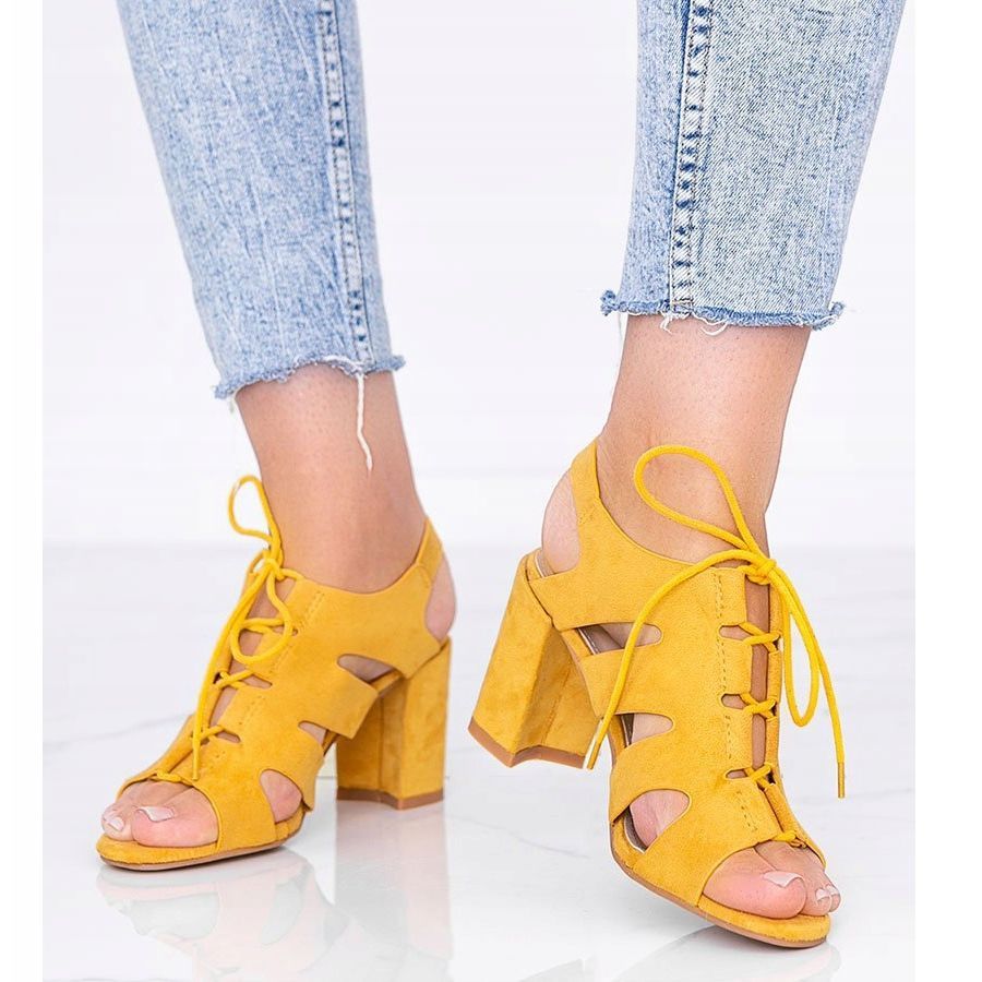 Details: Senffarbene gebundene Sandalen am Isabella-Pfosten gelb