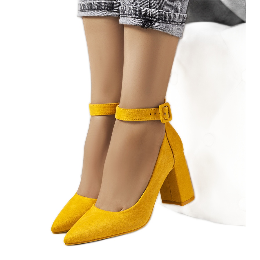 Die Pumps sind in den Größen 36 bis 41 erhältlich, sodass jede Frau das passende Paar für sich findet. Die Farbe der Sohle, ebenfalls in einem Gelbton gehalten, erregt Aufmerksamkeit und unterstreicht den einzigartigen Charakter des Modells. Das Sohlenmaterial aus Kunststoff garantiert Langlebigkeit und Komfort, die Innensohle aus Leder sorgt für eine ausreichende Luftzirkulation.