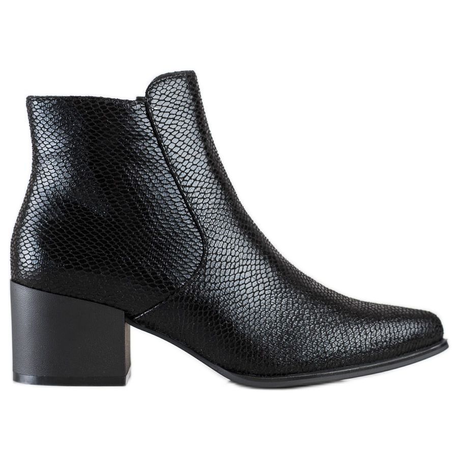 Entdecken Sie die glänzenden Snake Print Stiefeletten von Sergio Leone, die die perfekte Kombination aus Stil und Funktionalität darstellen. Diese eleganten schwarzen Stiefel wurden für Frauen entworfen, die Wert auf Mode und Komfort legen.