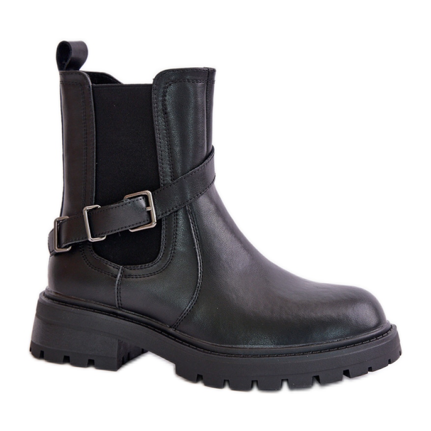 Details: Sergio Leone TR719-S Damen-Chelsea-Stiefel mit Schnalle, schwarz