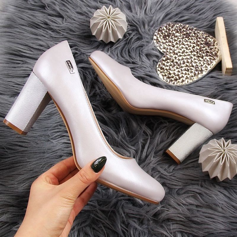Elegante und universelle Sergio Leone Pumps, die einen weiblichen Stil mit Komfort kombinieren. Die sanfte Perle, Silberfinish verleiht ihnen ein subtiles Leuchten - perfekt für die alltäglichen Stylisationen und für formellere Outputs.
