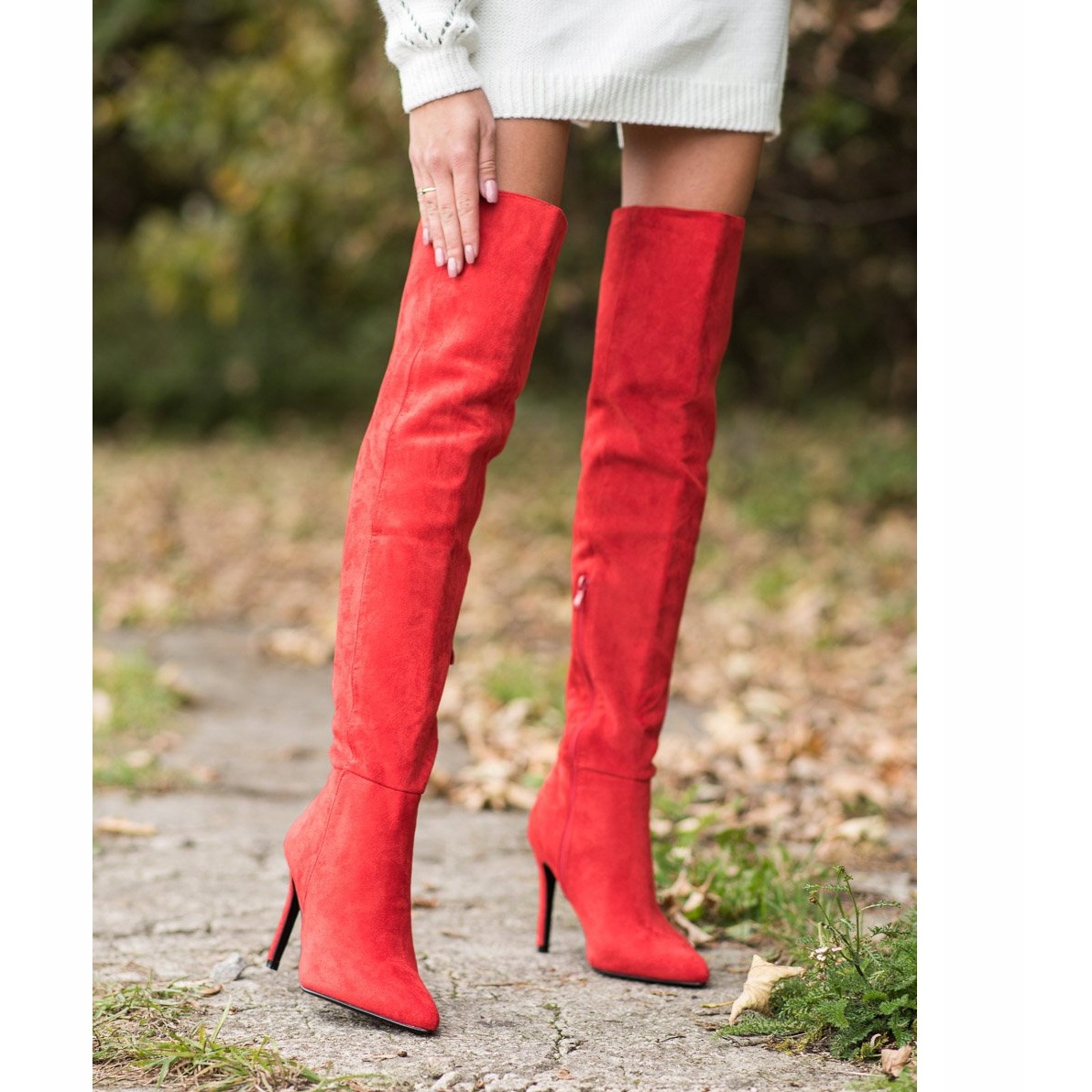 Stiefel mit hohen Absätzen der Marke Small Swan sind eine einzigartige Wahl für Frauen, die Schick und Eleganz hinzufügen möchten. Diese roten Stiefel aus hochwertigem, ökologischem Wildleder sind ein echter Hingucker und eine perfekte Ergänzung zu jedem Styling. Dank des Reißverschlusses an der Innenseite des Obermaterials ist das Anziehen äußerst bequem und schnell.