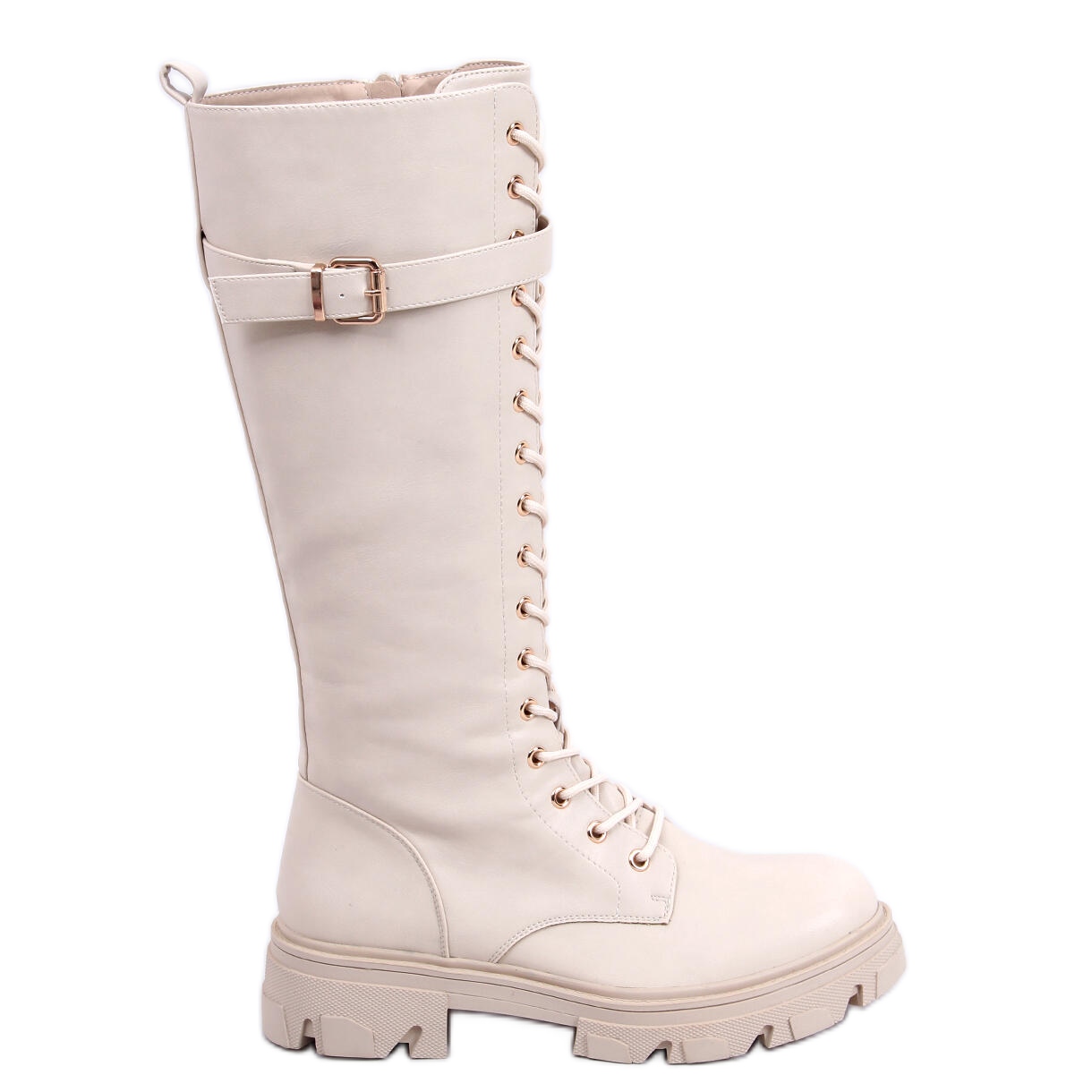 Diese kniehohen Stiefel passen perfekt zu einer Vielzahl von Stilen – von lässig bis militärisch. Durch die beige Farbe sind sie äußerst universell und leicht mit anderen Kleidungsstücken kombinierbar.
