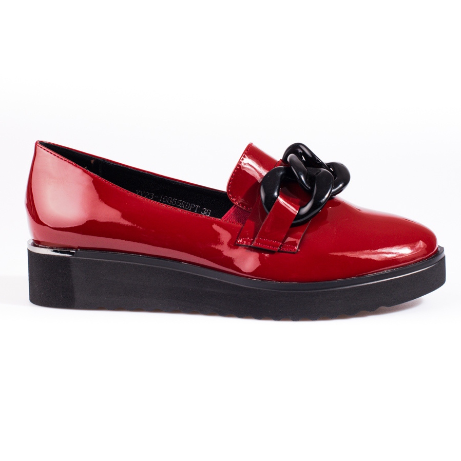 Details: Vinceza Shelovet Burgund lackierte Plateau-Loafer mit Kette rot