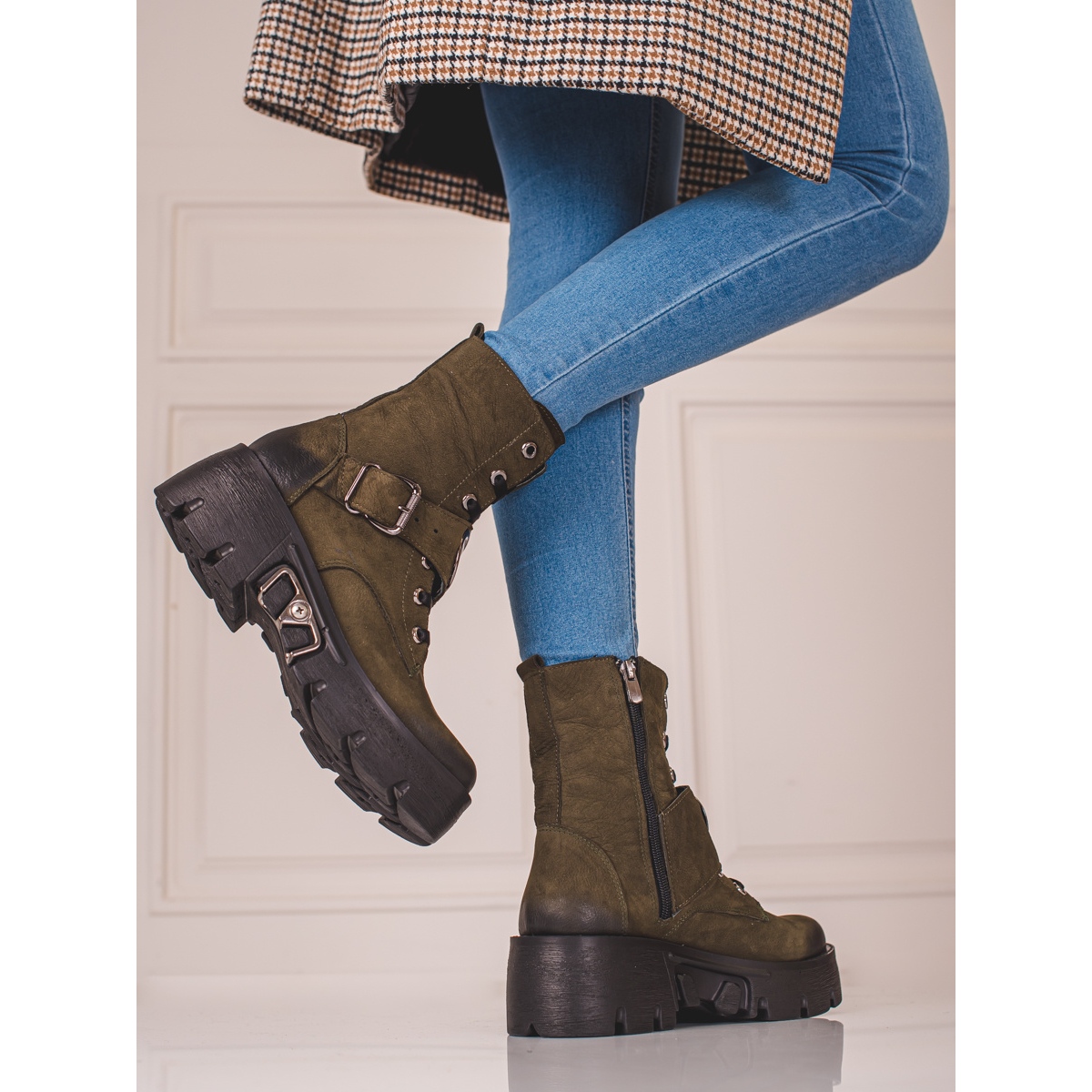 Die Arbeiter der Marke Shelovet bestehen zu 100 % aus Naturleder und sind langlebig und widerstandsfähig gegen Zerstörung. Die grüne Farbe der Schuhe ist eine außergewöhnliche Wahl – eine stilvolle Abkehr vom klassischen Schwarz oder Braun und verleiht jedem Styling Originalität und Raffinesse.