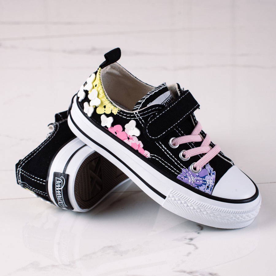 SHELOVET Shelovet niedrige Kinderturnschuhe schwarz mit Blumen mehrfarbig