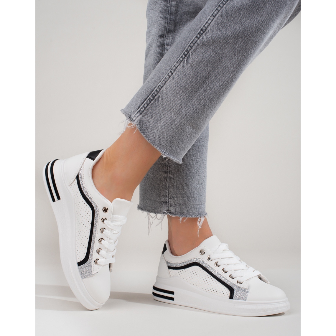 Details: Shelovet-Sneakers für Damen auf einem hohen Plateau in Weiß