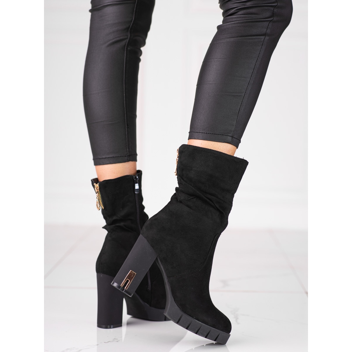 Sind Sie auf der Suche nach Schuhen, die klassische Eleganz perfekt mit praktischem Alltagskomfort verbinden? Die Damen-Stiefeletten aus Wildleder von Shelovet mit hohen Absätzen sind ein Angebot, das Sie sowohl durch sein Aussehen als auch durch seinen Tragekomfort begeistern wird. Schwarz, universell und stilvoll – deshalb können sie zu Ihrem Lieblingselement Ihres Herbst- oder Winteroutfits werden.