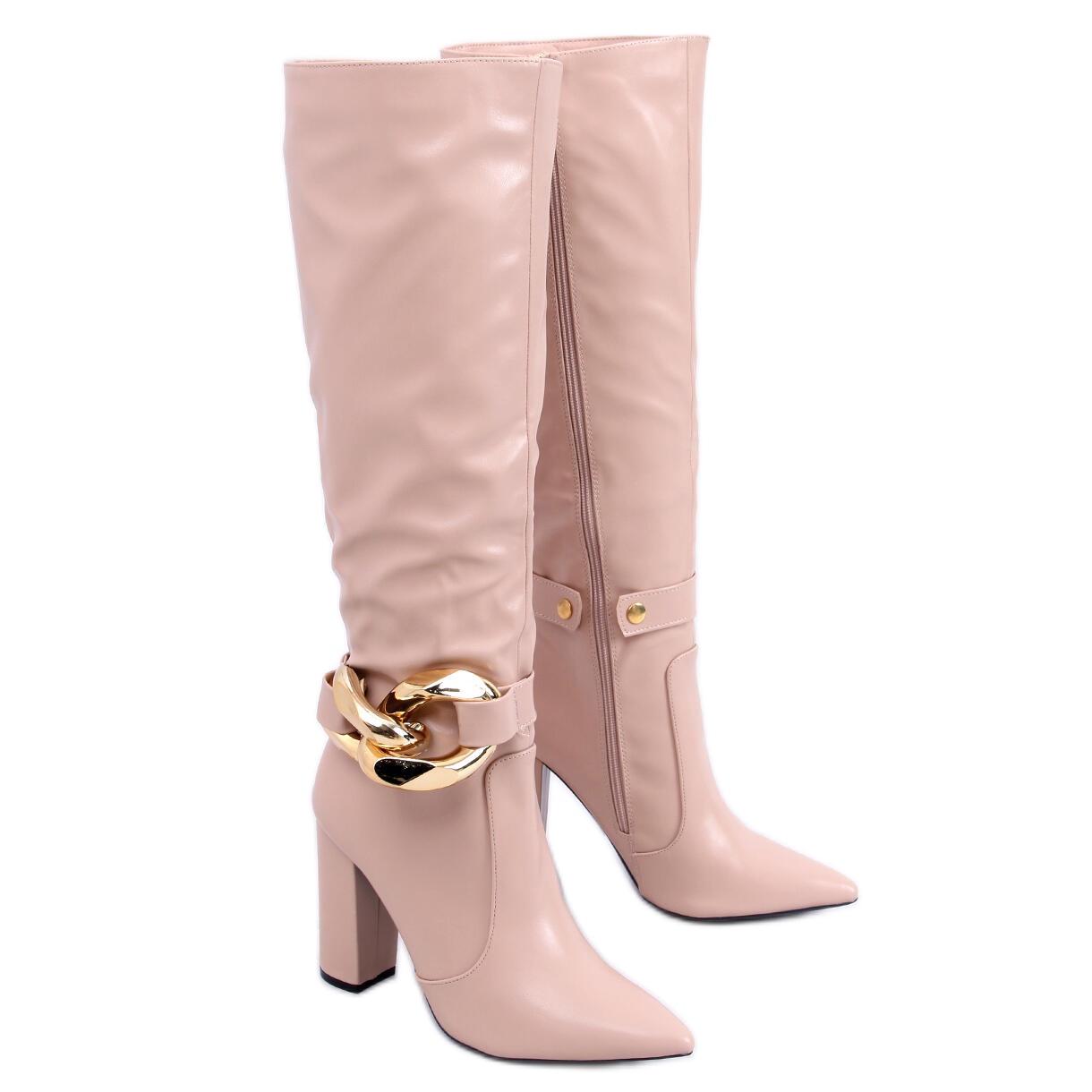 Ein zusätzlicher Vorteil ist die abnehmbare Goldkette, die Aufmerksamkeit erregt und Ihrem Styling einen einzigartigen Charakter verleiht. Ein praktischer Reißverschluss über die gesamte Länge des Obermaterials ermöglicht ein schnelles und einfaches An- und Ausziehen der Schuhe.