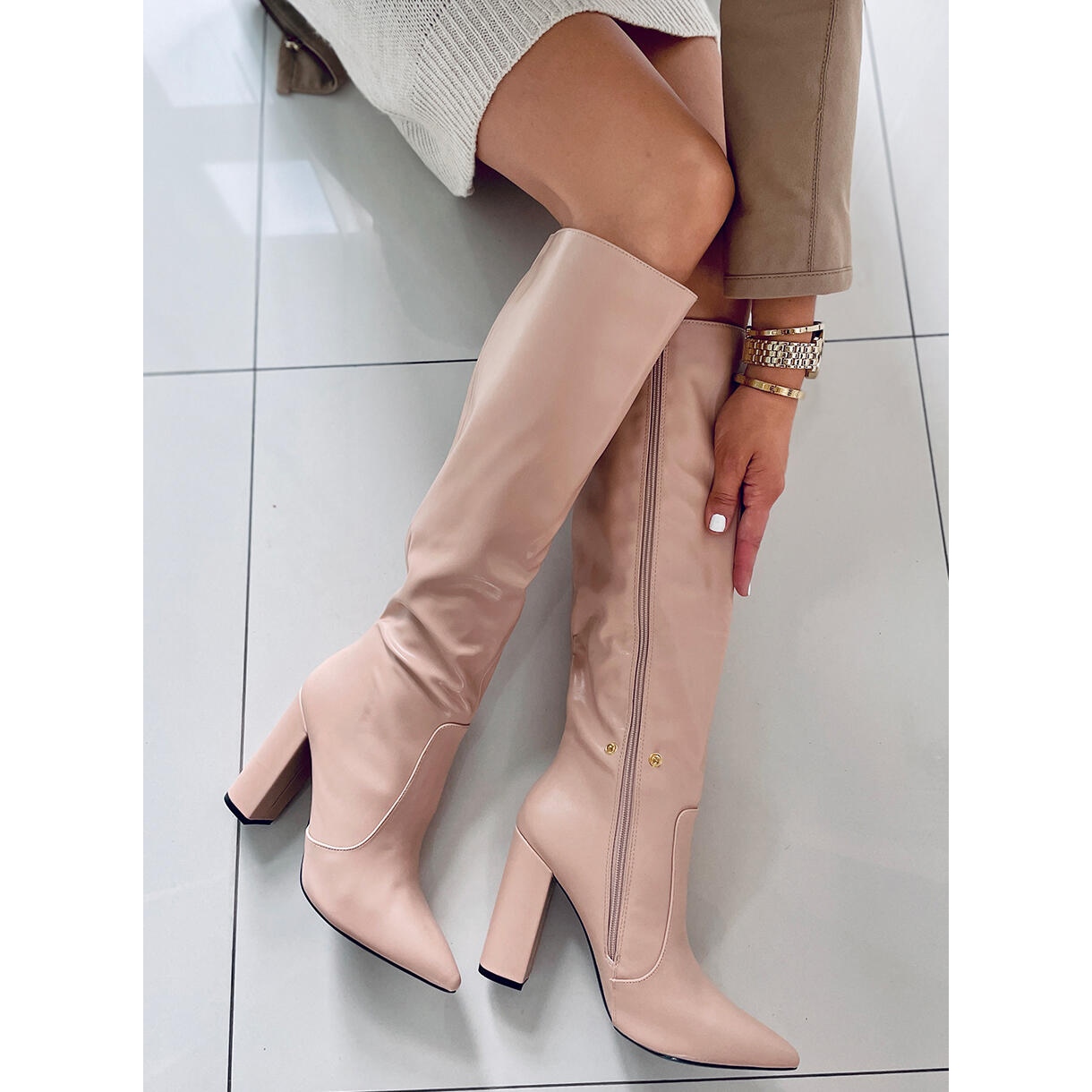 Sheryl-Stiefel mit hohen Absätzen in der Farbe Nude sind die perfekte Wahl für Frauen, die Eleganz mit Alltagskomfort verbinden möchten. Diese Vollnarbenstiefel begeistern nicht nur durch ihr modisches Aussehen, sondern auch durch ihre Funktionalität. Ein hoher, stabiler 10,5 cm-Absatz verlängert optisch die Beine und macht die gesamte Figur schlanker.