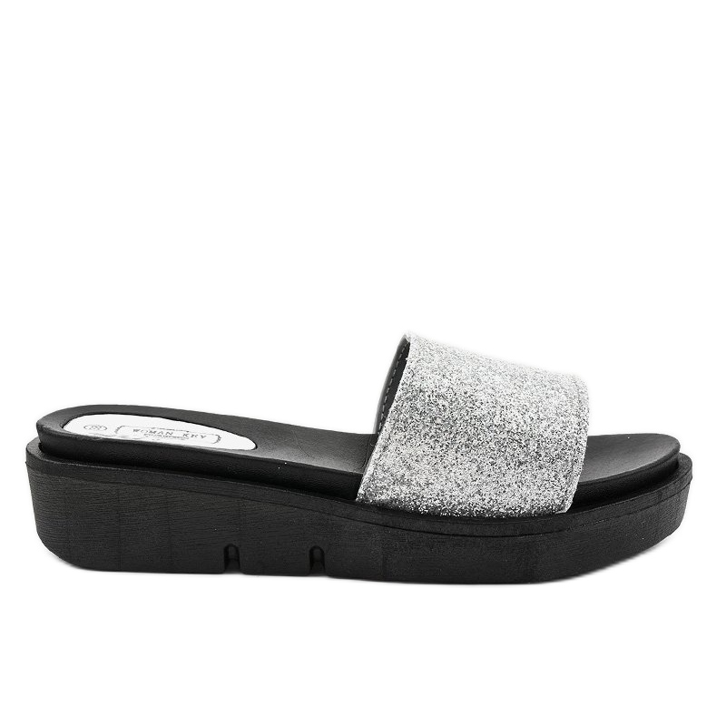 Inna marka Silber glänzende Hausschuhe E3969 grau