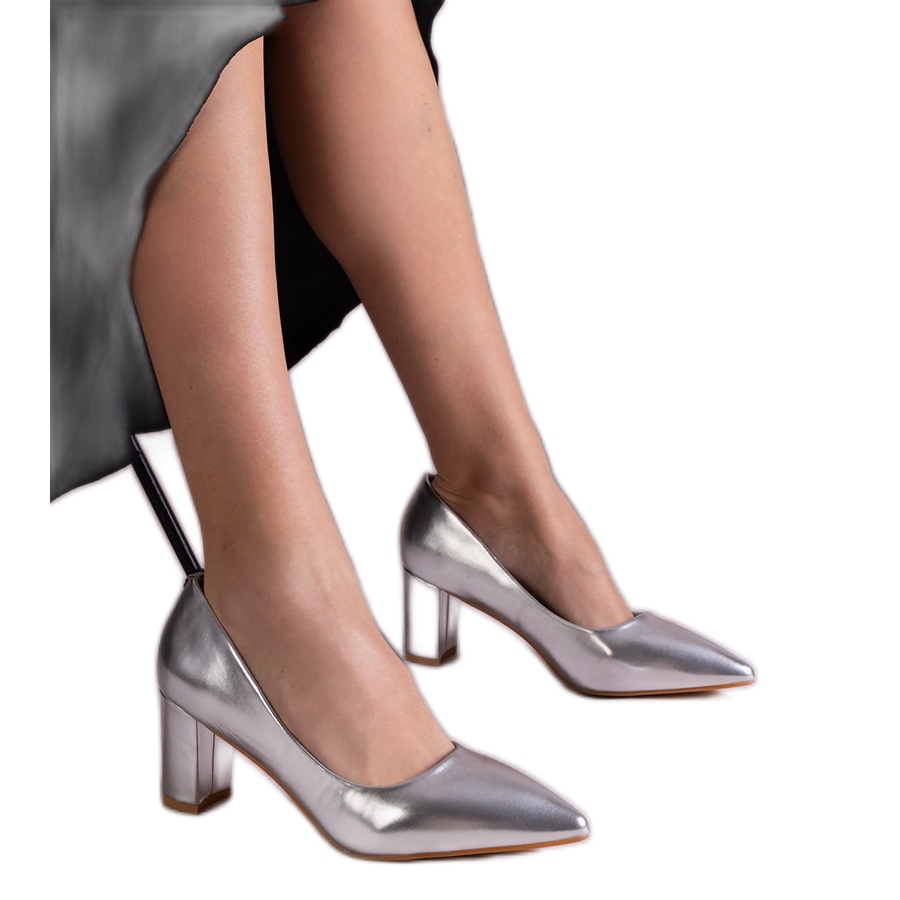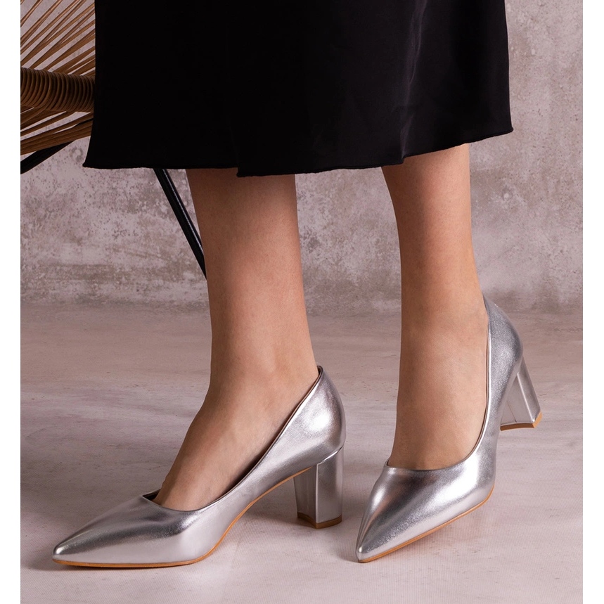 Silver Metallic-Pumpen auf dem Postmodell FB-294 sind ein Vorschlag, der sicherlich Aufmerksamkeit erregt und jeder Stiftung Pracht verleiht. Diese eleganten Schuhe bestehen aus hochwertigem ökologischem Leder und verbinden modernes Design und klassische Form harmonisch. Ihre hohe Materialqualität bedeutet, dass sie nicht nur gut aussehen, sondern auch Komfort für lange Stunden bieten.