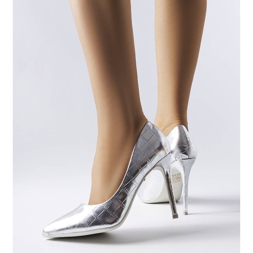 Entdecken Sie Eleganz und Weiblichkeit mit den Pumps Raison von PA1, die nicht nur durch ihr Aussehen, sondern auch durch ihren Tragekomfort begeistern. Diese silbernen High Heels mit Krokodilprägung sind die perfekte Wahl für Frauen, die sich von der Masse abheben möchten. Ein schlanker, hoher Absatz von 10 cm und eine spitze Spitze lassen die Füße phänomenal aussehen und die Figur schlank machen.