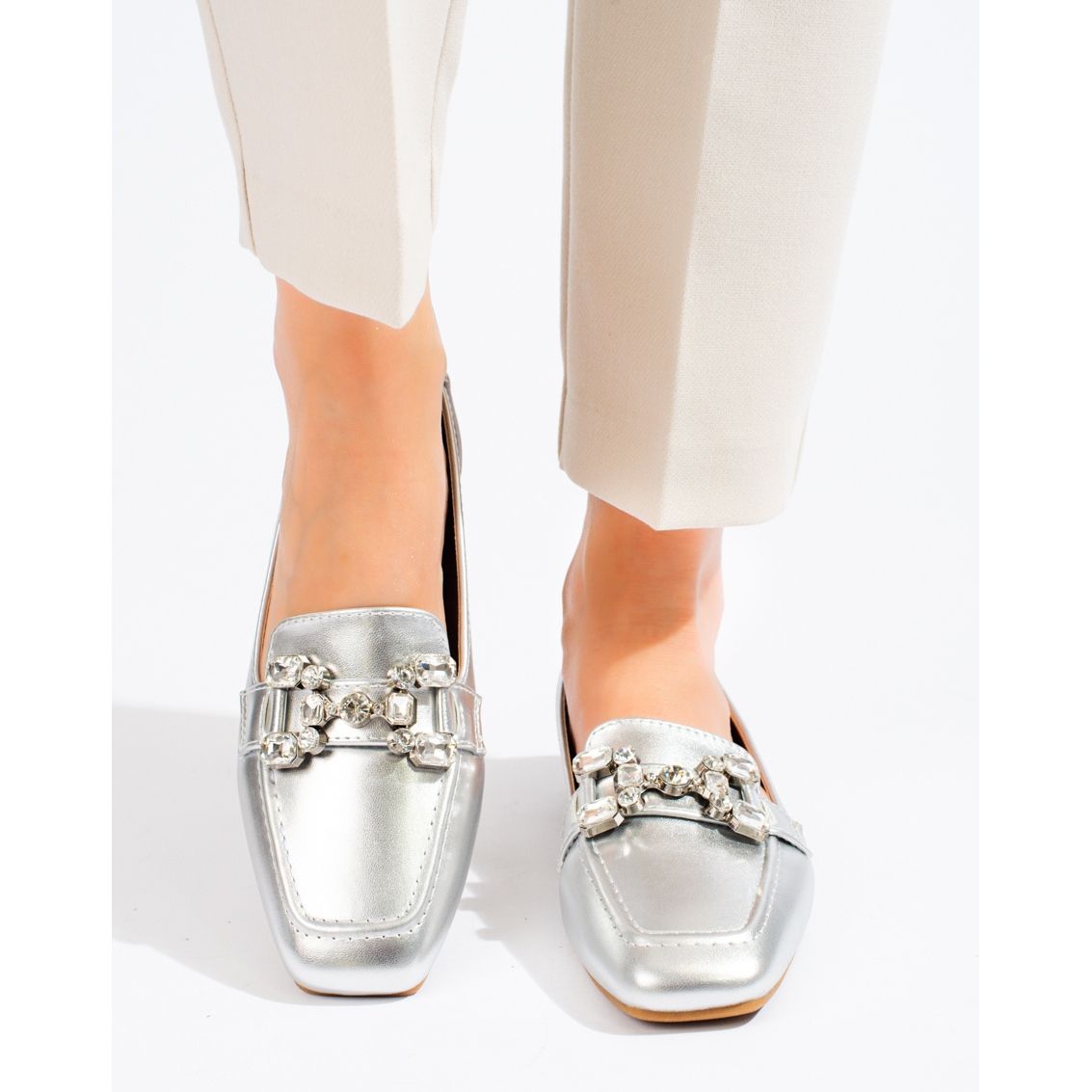 SHELOVET Silberne Damen-Loafer mit Shelovet-Verzierung silber-