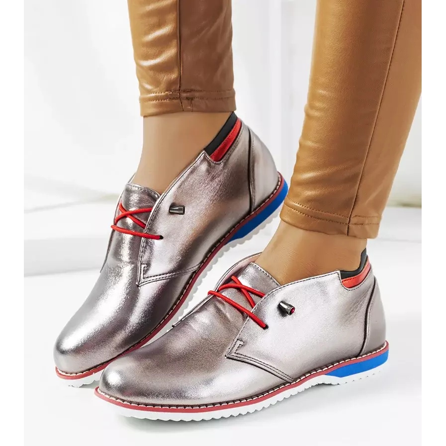 Die silbernen Damenschuhe von Reyes sind die perfekte Wahl für Frauen, die ihrem Frühlings-Styling Glanz verleihen möchten. Aus hochwertigem ökologischem Leder gefertigt, zeichnen sich diese eleganten Schuhe durch eine auffällige Metallic-Farbe aus. Rote und blaue Akzente kontrastieren dezent mit dem dominierenden Silber und verleihen dem Schuhwerk Originalität und Ausdruckskraft.