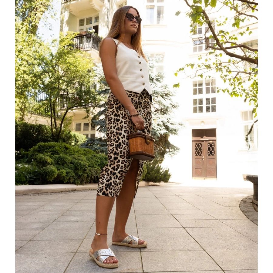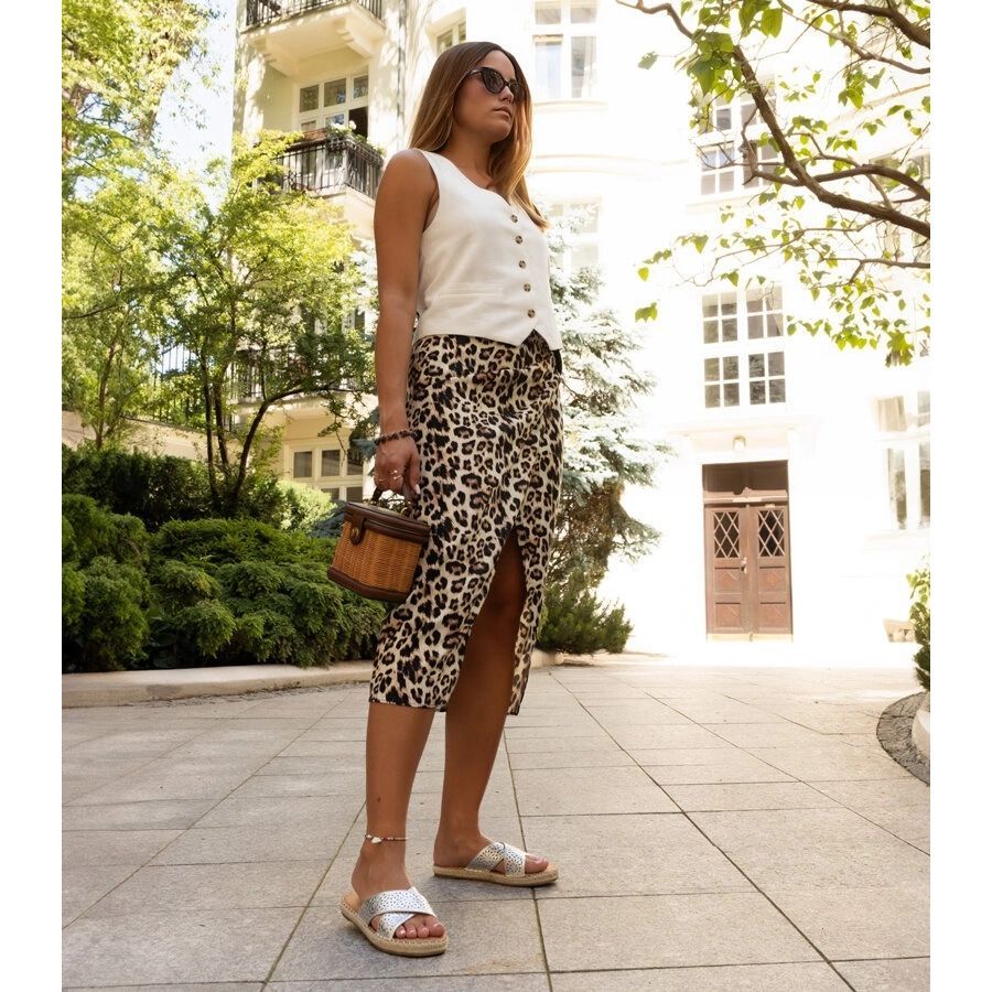 Dank der Flat -Ferse 2 cm hoch garantieren die Flip -Flops bei jedem Schritt Stabilität und Komfort. Ihre metallische, silberne Farbe wird sicherlich Aufmerksamkeit erregen und jeden Sommer -Stylization den Glanz verleihen, und offene Details für offene Arbeiten sorgen für eine angemessene Belüftung an heißen Tagen.