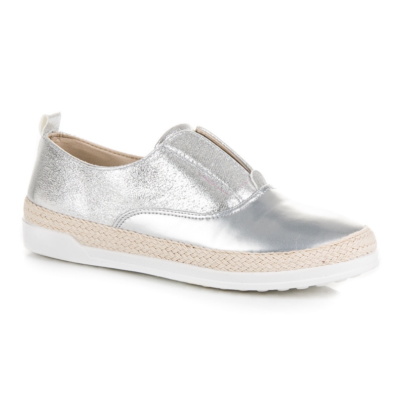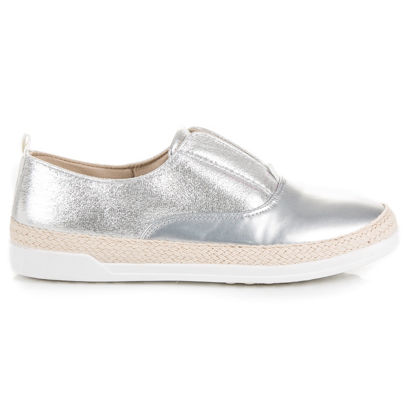 Silver Sneakers Grey Espadrilles sind äußerst stylische Damenschuhe, die mit Sicherheit die Aufmerksamkeit auf sich ziehen. Diese trendigen Espadrilles aus hochwertigem, lederähnlichem Material bieten einen einzigartigen metallischen Glanz und eignen sich perfekt für modische und lässige Alltags-Stylings.
