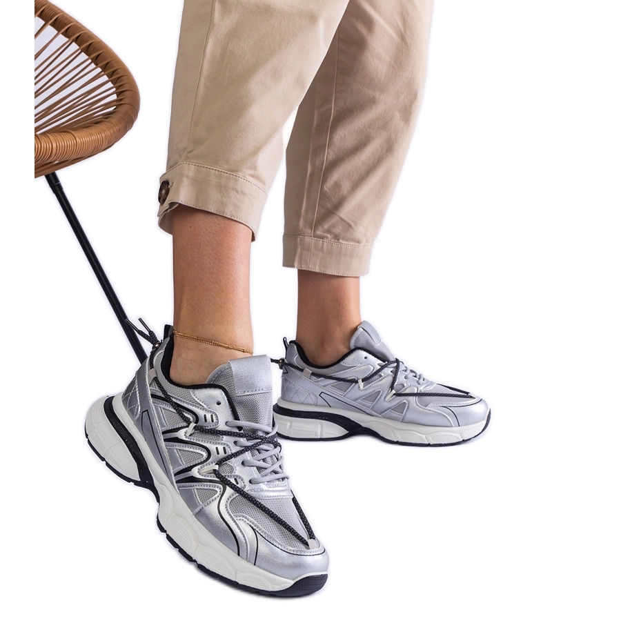 Details: Silberne Frauen -Sneaker auf einer massiven Sohle