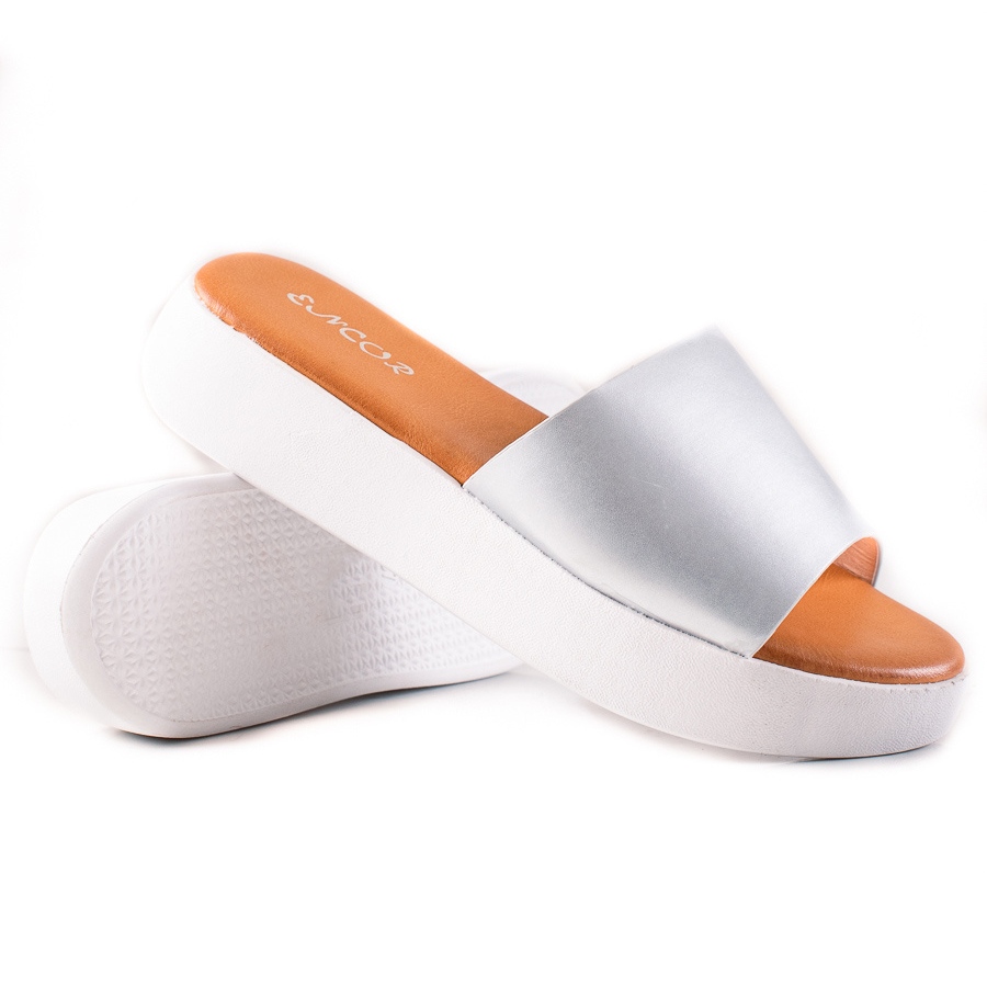 Details: Encor Silberne Hausschuhe auf der Plattform