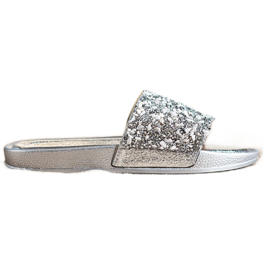 Small Swan Small Swan Silberne Hausschuhe mit Kristallen grau