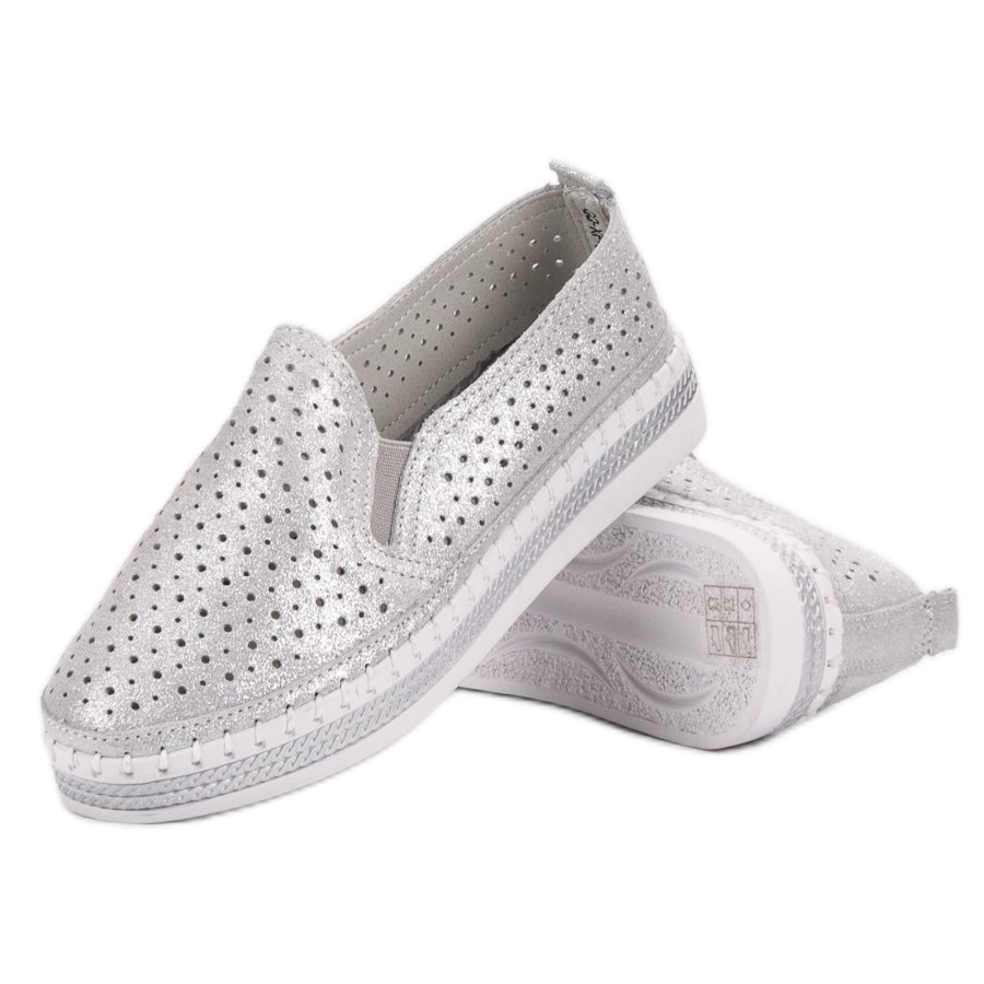 Silberne Leder-Slip-Ons von Goodin sind die perfekte Wahl für Frauen, die Komfort mit originellem Stil verbinden möchten. Diese einzigartigen Schuhe fallen durch ihre einzigartige graue Farbe und die sorgfältige Verarbeitung auf, die für Langlebigkeit und Tragekomfort sorgt.