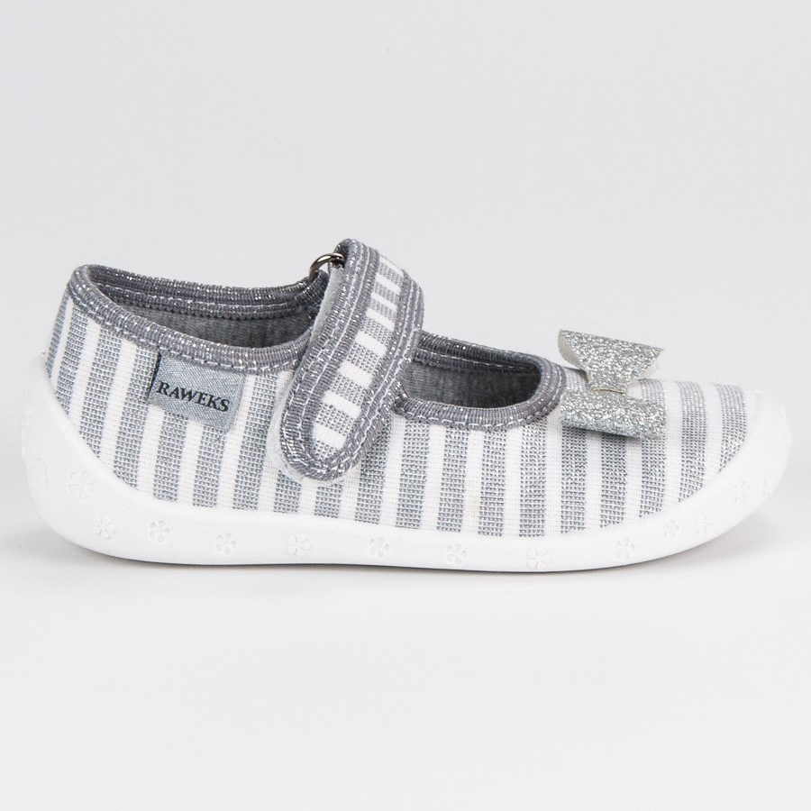 Raweks - graue Kinderhausschuhe mit silberner Schleife