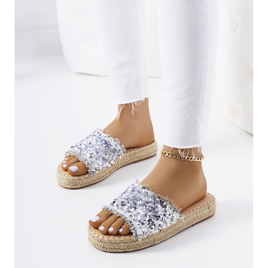 Details: Silberne Pantoffeln auf der Susanna-Plattform