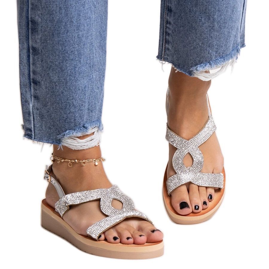 Silbersandalen auf einer Plattform mit MIFSA -Zirkonen sind ein ideales Angebot für jede Frau, die sich im Sommer stilvoll und komfortabel fühlen möchte. Ihr modernes Design zeichnet sich durch ein spektakuläres Finish von Zirkonen aus, was ihnen Eleganz verleiht und sie für verschiedene Gelegenheiten geeignet macht - von Sommerveranstaltungen bis hin zu täglichen Spaziergängen.