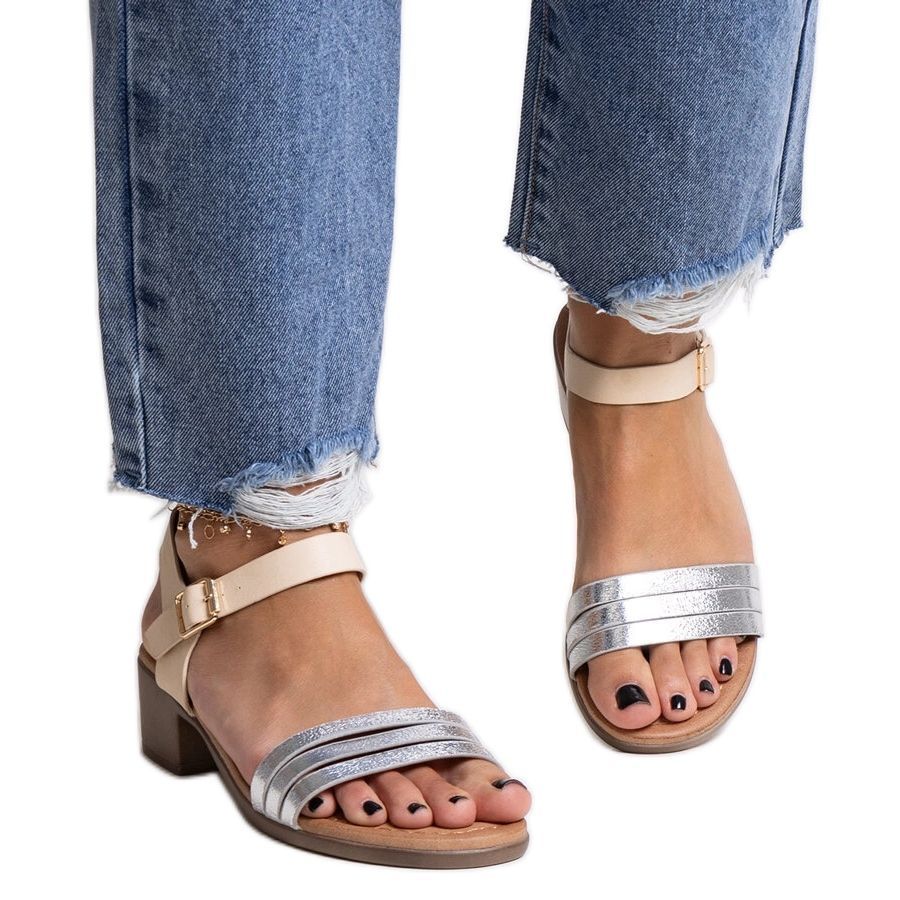 Wir präsentieren Silbersandalen mit Low -Heels -Salsabi, die für Sommertage eine ausgezeichnete Wahl sind! Ihr modernes und elegantes Design passt perfekt zu den neuesten Modetrends, dank der sie mit Sicherheit viele Augen anziehen werden.