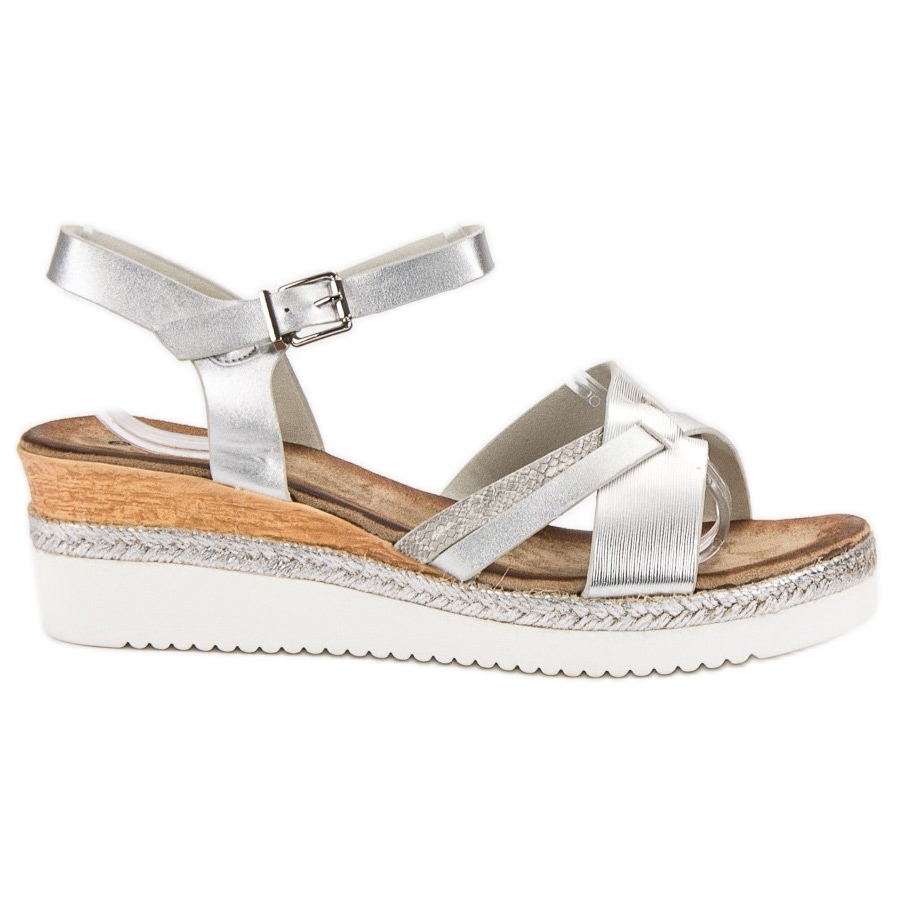 Entdecken Sie Eleganz und Komfort in Sommerstilen mit silbernen Keilsandaletten von Evento. Diese wunderschön glänzenden Damenschuhe vereinen modernes Design mit Funktionalität und bieten die perfekte Kombination aus Stil und Komfort. Sie bestehen aus hochwertigem ökologischem Leder und zeichnen sich durch einen verstellbaren Knöchelriemen aus, der eine perfekte Passform und Unterstützung für den Fuß ermöglicht.