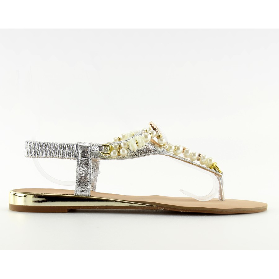 Inna marka Silberne Sandalen mit Perlen D580 Silber grau