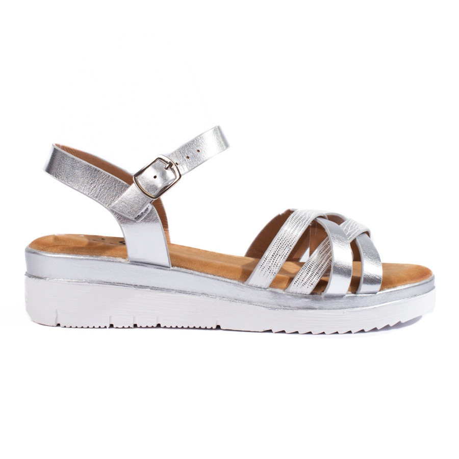 Silberne Shelovet Damen-Keilsandalen