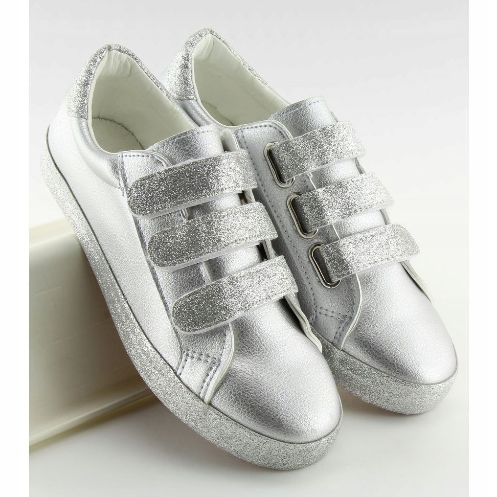 Details: Silberne Sneakers mit Klettverschluss XL10P Silber grau gelb