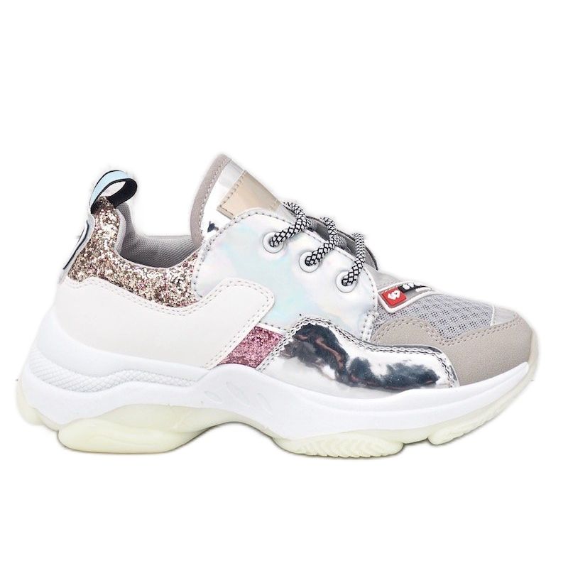 Die silbernen, stilvollen Sport-Sneaker B0-206 sind die perfekte Wahl für moderne Frauen, die nicht nur Wert auf Komfort, sondern auch auf einen modischen Look legen. Diese einzigartigen Schuhe zeichnen sich durch ein überwiegend silbernes Obermaterial aus, das an den Seiten und auf der Rückseite mit farbenfrohen Einsätzen angereichert ist, was ihnen einen einzigartigen Charakter verleiht.