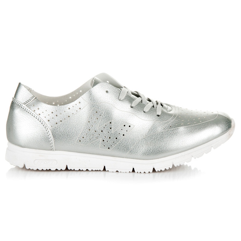 Elegante und universelle Sneaker, die sportlichen Stil mit alltäglichem Komfort verbinden. Die silbergraue Farbe in Kombination mit der durchbrochenen Maserung verleiht ihnen Leichtigkeit und einen dezenten Glanz, sodass Sie sie problemlos mit vielen Stilen kombinieren können.