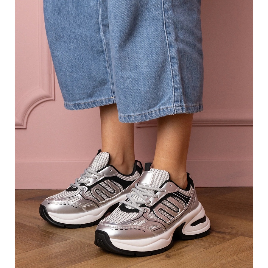 Diese Sneakers, hergestellt aus hochwertigen Synthetik, erfreuen sich mit einem metallischen Finish im Schatten von Silber, was sie zu einer großartigen Ergänzung sowohl für Sport- als auch für lässige Outfits macht. Das Profil mit niedrigen Schuhen sorgt für den maximalen Tragenkomfort, und die 6 -cm -Hochplattform verleiht nicht nur Stil, sondern auch eine hervorragende Polsterung bei alltäglichen Aktivitäten.