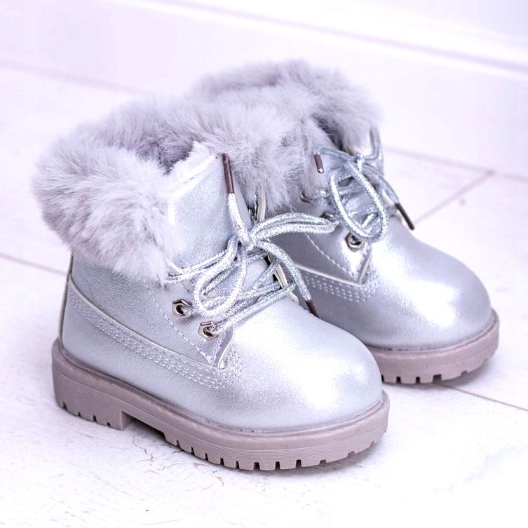 Details: Silberne warme Kinderstiefel Trappers Fobos