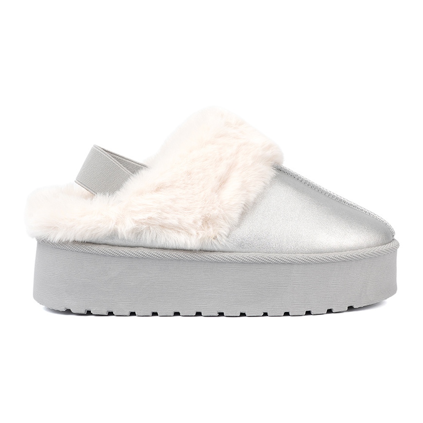 Dank des nachdenklichen Designs mit einer vollen Nase und einer offenen Ferse ist es extrem einfach, Schneestiefel anzuziehen und auszuziehen - einfach in den Fuß zu schieben und Sie können ihren Komfort genießen. Die 5 cm hohe Plattform aus festem Kunststoff mit einem Profil sorgt für Stabilität und Sicherheit auf rutschigen Oberflächen.