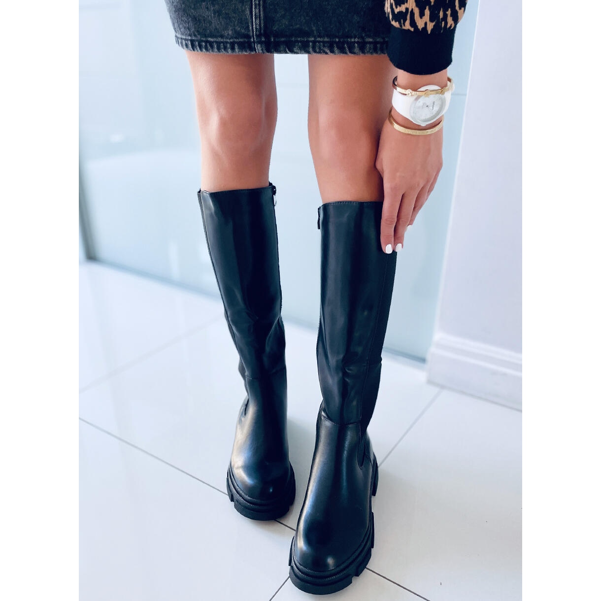 Skylar Schwarze Frauenstiefel - schwarze Stiefel auf einer dicken Sohle, die einen militärischen Charakter mit alltäglichem Komfort verbinden. Der minimalistische Schnitt mit einem flexiblen Einsatz ähnelt Jodhpur -Stiefeln, und der Reißverschluss in voller Länge am Obermaterial sorgt für schnelles und komfortables Anziehen. Das Innenraum aus ökologischem Leder ist mit weichem Fell gepolstert - perfekt für kühlere Tage.